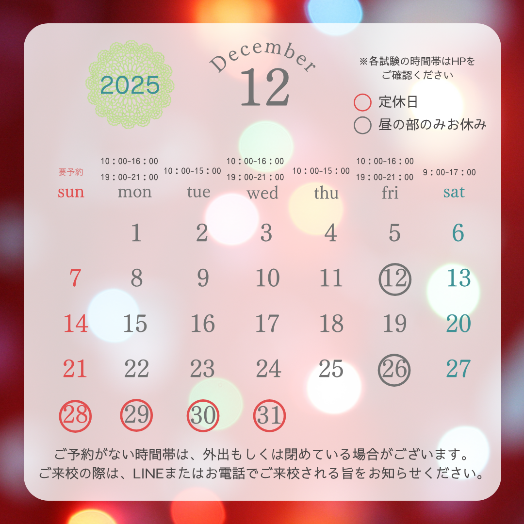 12月 開校カレンダー