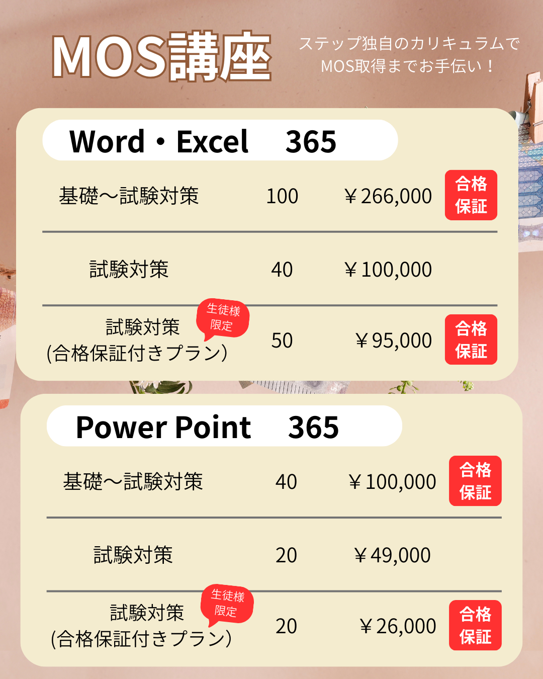 ステップ独自のカリキュラムでMOS取得までお手伝いいたします。